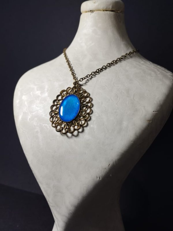 گردنبند برنزی زیبا با رنگ ثابت که کار دست هنرمندان رزین کار است ،با استفاده از ماده رزین درجه یک این هنر را خلق کردن